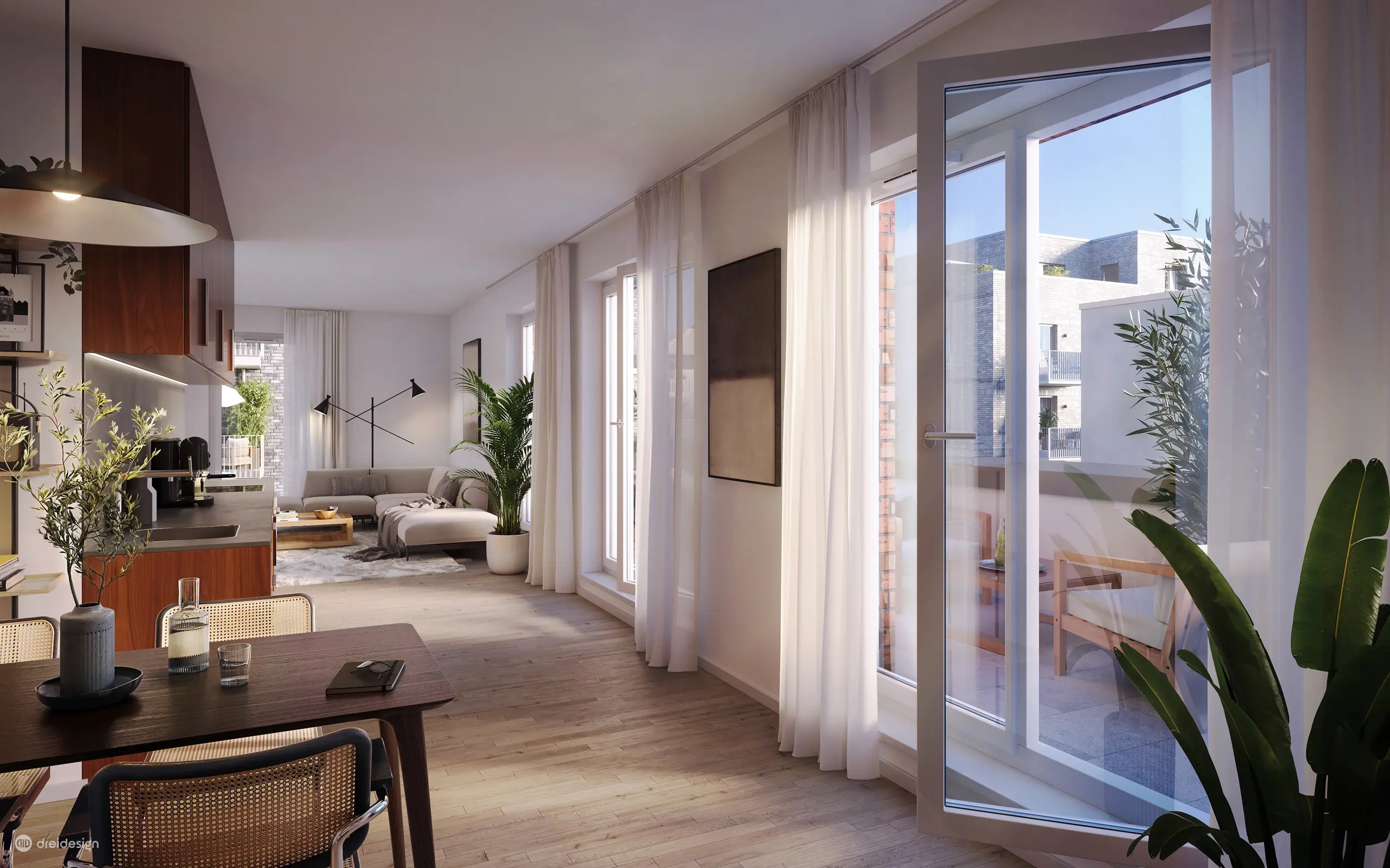 Für die Vermarktung dieses besonderen Neubauprojekts hat dreidesign aus Hamburg hochwertige 3D-Visualisierungen erstellt. Unsere fotorealistischen Immobilienvisualisierungen zeigen Architektur, Materialien und Lichtstimmungen so realistisch, dass Interessenten schon jetzt einen lebendigen Eindruck vom späteren Wohnen gewinnen.