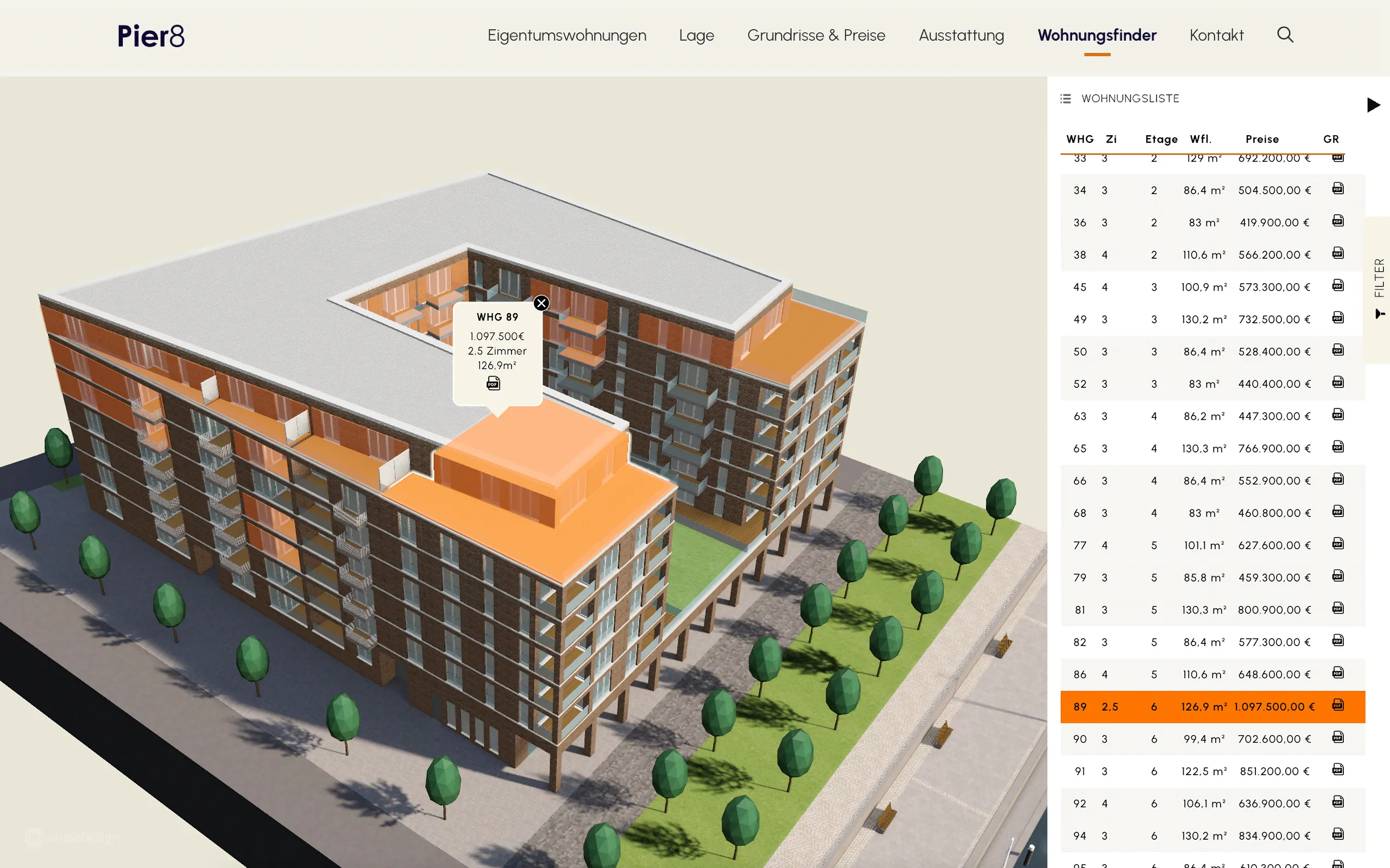 Mit unserem interaktiven Wohnungsfinder wird die Suche nach der passenden Wohnung zum Erlebnis. Das Modell lässt sich in Echtzeit drehen, zoomen und nach individuellen Kriterien filtern – von Zimmerzahl über Preis bis hin zur Verfügbarkeit. Dank einfacher Datenpflege bleibt der Inhalt immer aktuell, und das Design fügt sich nahtlos in die bestehende Website ein. Der Wohnungsfinder macht Immobilien digital erlebbar und schafft maximale Transparenz für Interessenten.